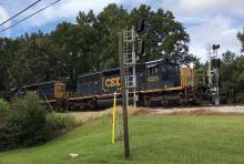 CSXT SD40-3 4225 (rebuilt SD40-2 x8806/CR 6378) runs light with SD40-3 4066 through the Tyrone signals on the way to Peachtree City to pick up local traffic on September 2, 2018.