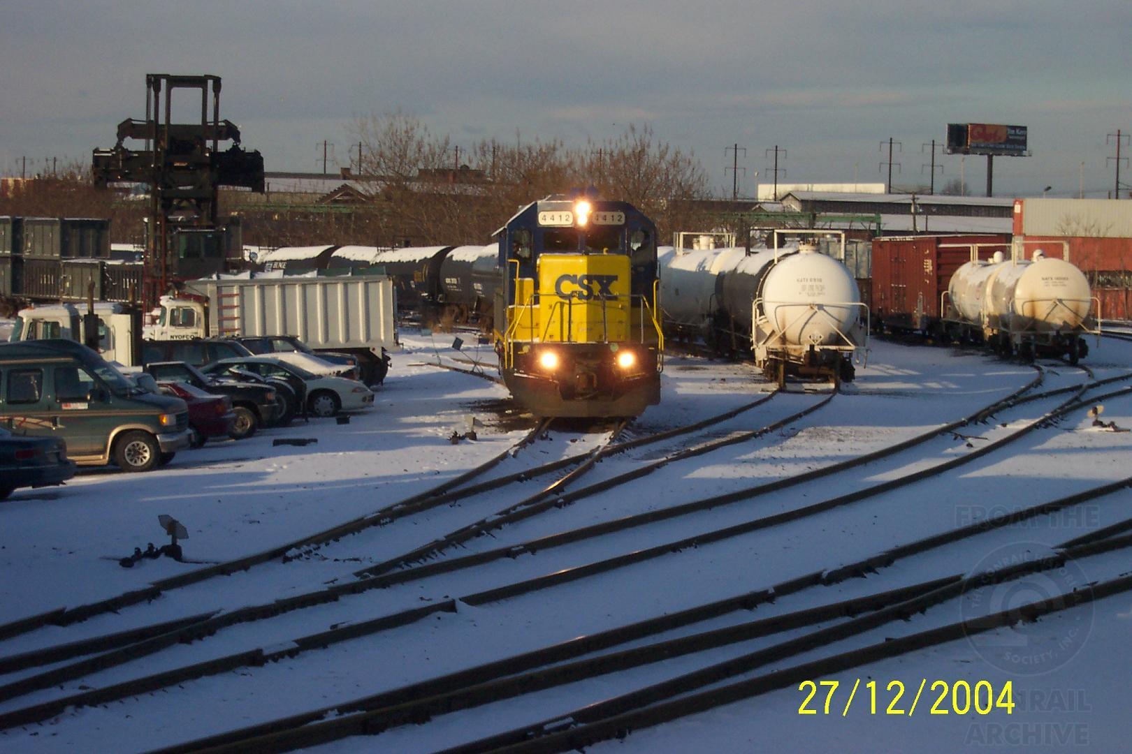 CSXT 4412 at the former CNJ's Brills Yard, Newark NJ. 4412 was aaigned to yard job OI-12 on this day. I was on the OI-19 which also worked Brills at this time. OI-12 drilled Epic and the Chemical Plants alond Doremus Ave, while OI-19 drilled Naporanos and the Manufacturers Branch.