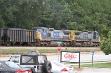 CSXT C40-8's 7327 (ex-CR 6121) and 7804 head through Fairburn, GA on August 10, 2016.