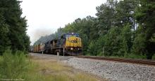 CSXT C40-8W 7361 (CR 6201) and SD70AC 4524 pound a load of mixed freight northbound at mile 832 in Tyrone, GA on August 2, 2014.