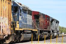 YN2 painted CSX 8482 follows CP 9832 and 7023 North through Wellington. 8482 will be dropped off at Cleveland's Collingwood yard within the hour.