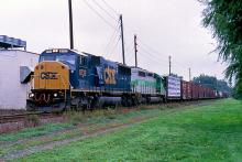 CSX 8732 (ex-CR 5599) is on the point of Q-409 at Dumont, NJ 10/2002
