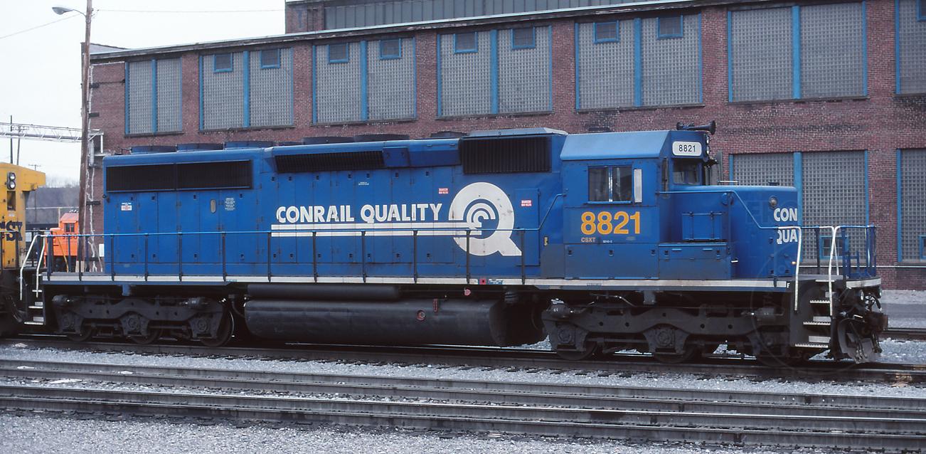 Previous Next Former CR 6411 is at Cumberland, MD on 3/22/00. Photo By Jeff Weaver Equipment Type EMD SD40-2 Conrail Number 6411 Post Conrail Owner CSX Post Conrail Number CSX 8821 Year 2000 Original Date 3/22/00 Collection CRHS Conrail Photo Archive Contributions