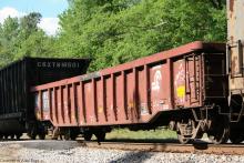 CSXT 91?510 CR G47 class gondola rolls through Peachtree City, GA on April 23, 2016.