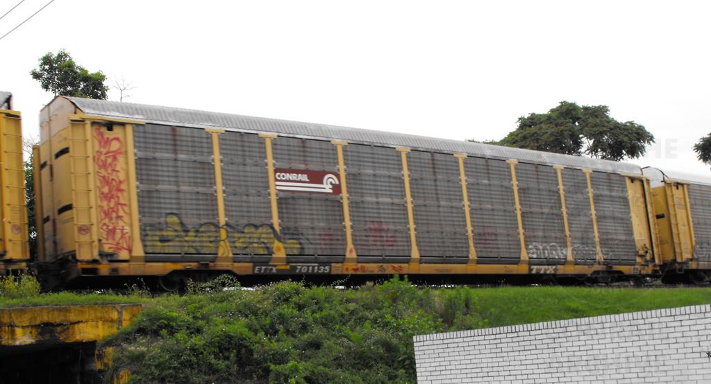 ETTX 701135 is seen in CSX Q217-18 at Newark DE on 6/18/13. Rack number is CR 7101 and is now owned by CSX.