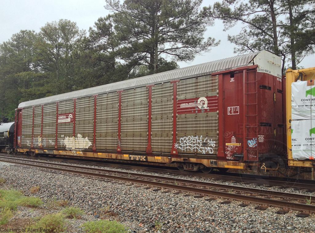 ETTX 701225 (CR 7186) class ML3N autorack rolling through Peachtree City, GA on April 23, 2017.