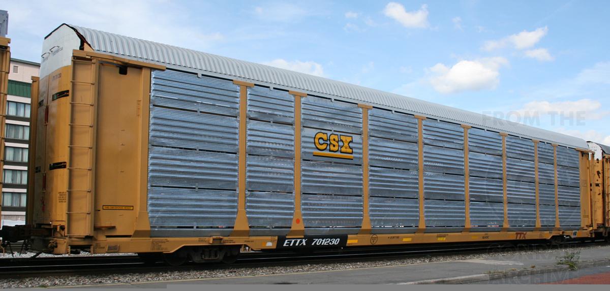 Previous Next ETTX 701230 is on Q-249 at Cumberland, MD on 9/15/12. Rack number is CR 7162 and was built 3-89, rebuilt 6-12. Photo By Donnie Lee Equipment Type ETTX Tri-Levels Post Conrail Owner CSX Year 2012 Original Date 9/15/12 Collection CRHS Conrail Photo Archive Contributions