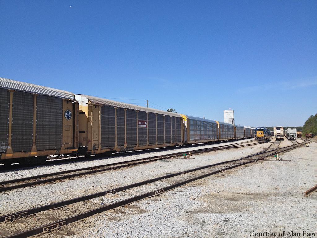 CSX SD40-2 8060, SD50-2 8666, and UP ES44AC 7413 pull a load of autoracks through the Fairburn, GA sorting yard in March 2014. Here, ETTX 701730 passes by CSX GP40-2 Mother-unit 6911 and Road Slug 2303.