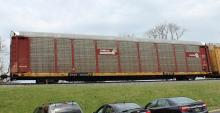 ETTX 800824 is seen in the consist of CSX Q217-07 at Newark, DE on 4/2/15. Rack number is CR 6899, built 1-89, rebuilt 6-97 and is now owned by CSX.