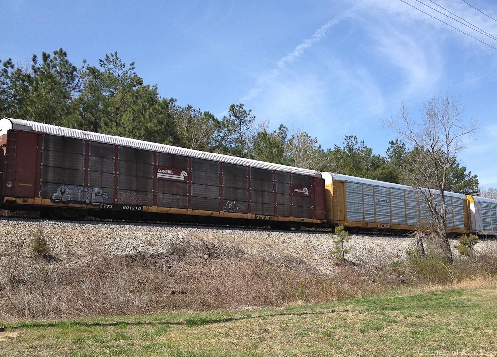 Previous Next ETTX 801319 at Tyrone, GA on March 24, 2014. Photo By Alan Page Equipment Type ETTX Tri-Levels Post Conrail Owner CSX Year 2014 Original Date 3/24/14 Collection CRHS Conrail Photo Archive Contributions