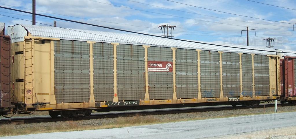 ETTX 801828 is seen at Newark DE on 9/16/07. Rack number is CR 6990 rebuilt 3-98 and is now owned by CSX.