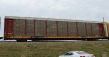 ETTX 802441 is seen on Q296-22 at Newark, DE on 4/7/15. Rack number is CR 7001, built 2-89, rebuilt 4-97 and is now owned by CSX.