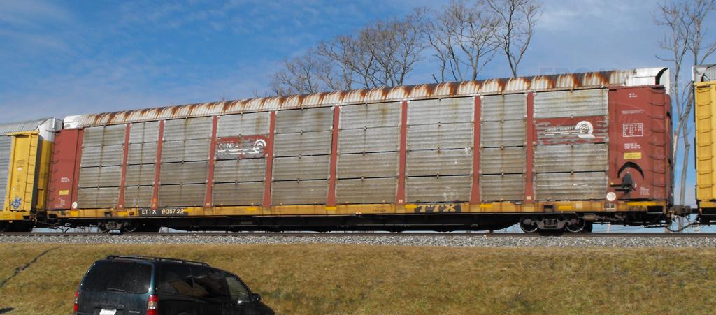 ETTX 905732 is seen on Q216-12 at Newark DE on 2/14/12. Rack number is CR 6449 and is now owned by NS.