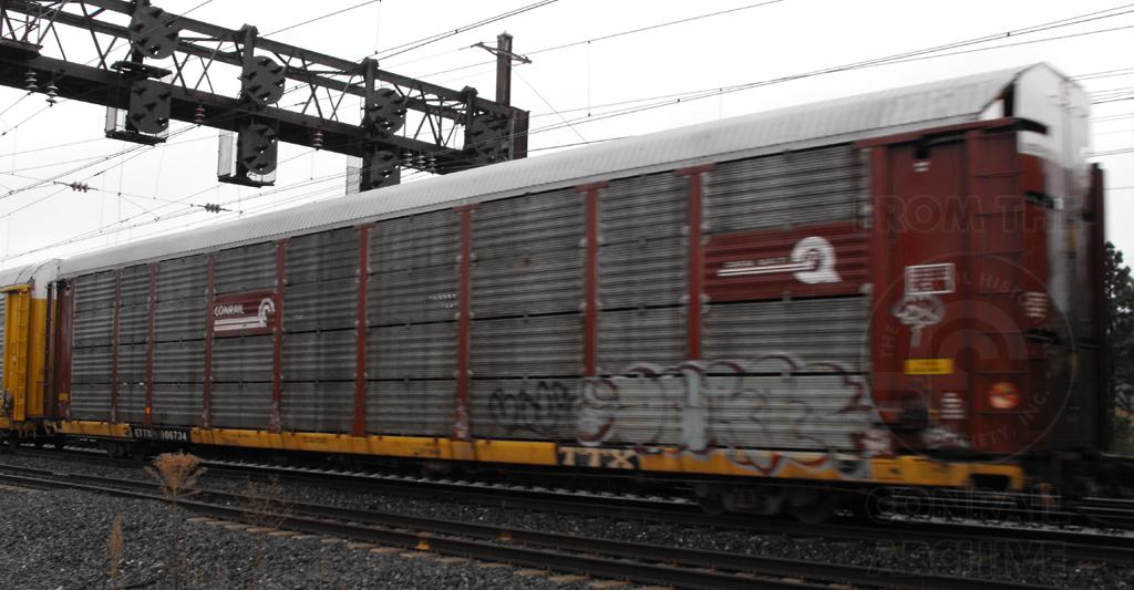 Previous Next ETTX 906734 is seen on 36A at Newark DE on 9/28/10. Photo By Chris Carangi Location Details Amtrak's Northeast Corridor Equipment Type ETTX Tri-Levels Year 2010 Original Date 9/28/10 Collection CRHS Conrail Photo Archive Contributions