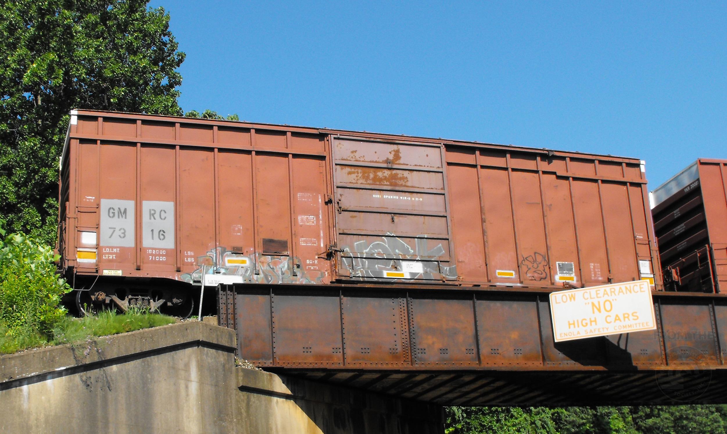 GMRC 7316 is seen in the consist of NS 37Q at Marysville, PA on 7/9/11. Car is ex MSDR 192251/IC 504290/CR unknown/PC unknown and was built 10-72 by P-S as part of Lot 9602. Car was built as a PC X75 class box.