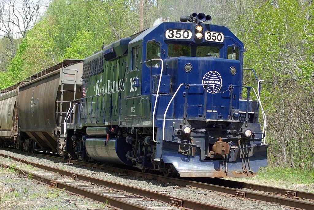 MEC 350 (Guilford Rail System/Pan Am Railways) leads local ED-2 at Deerfield MA on 5/6/09.