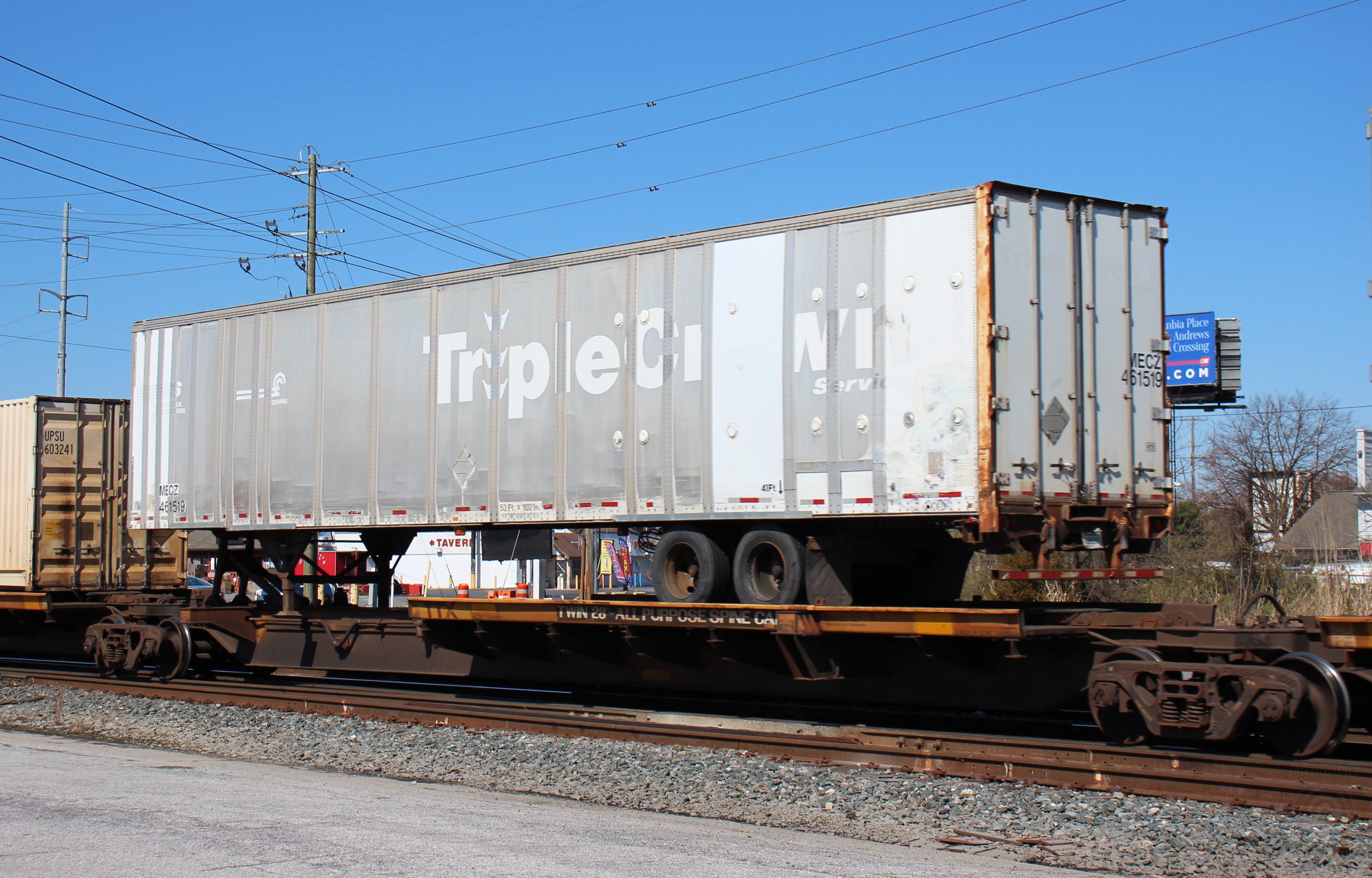 MECZ 461519 is seen in the consist of CSX I032-23 at Elsmere, DE on 3/24/24. Trailer is ex TCSZ 461519.