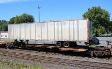 MECZ 462303 is seen in the consist of NS 211 at Sinking Spring, PA on 9/5/20. Trailer is ex TCSZ 462303.