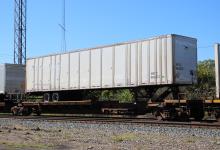 MECZ 464272 is seen in the consist of CSX Q032-16 at Elsmere, DE on 10/17/20. Trailer is ex TCSZ 464272.