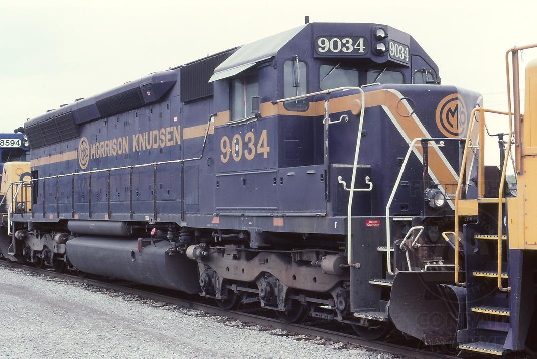 MKCX 9034 (ex CNW 6505/CR 6176/PC 6176/PRR 6176) is at Cumberland, MD on 9/24/00. It would later become HLCX 9034 and continue to serve in lease service. Eventually it would be sold and became ASDX 9034.