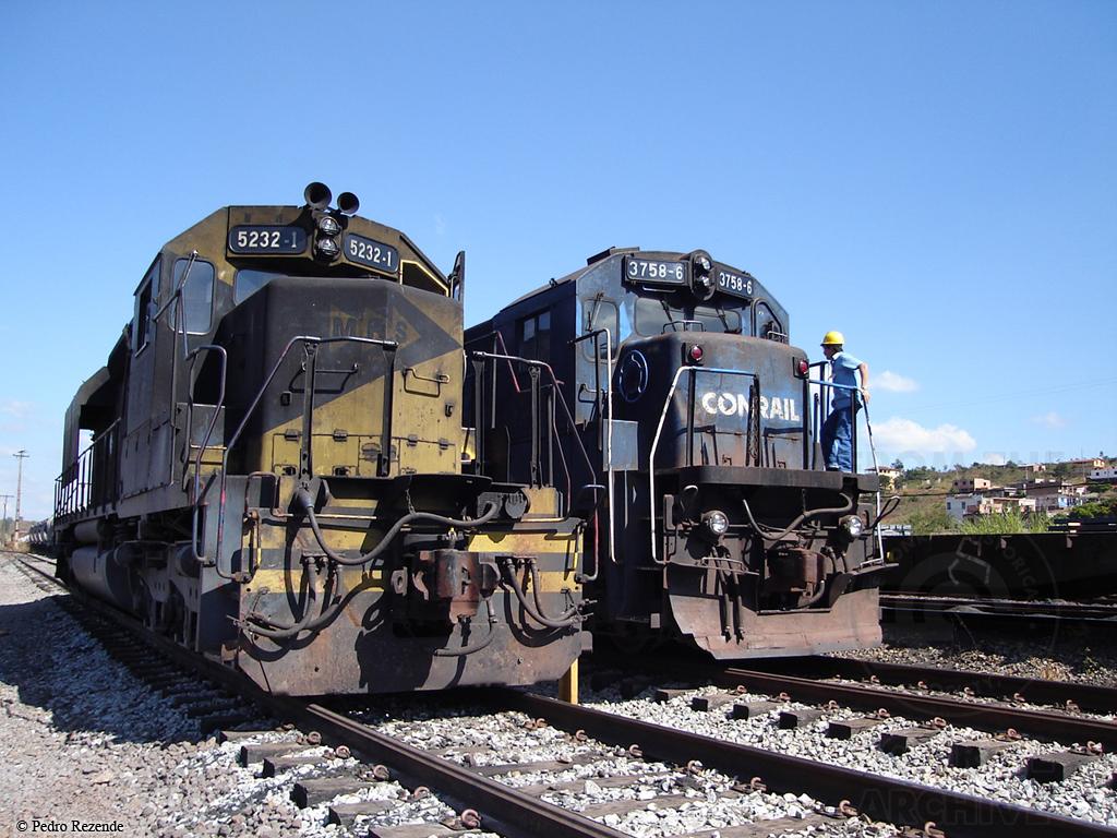 Former CR C36-7 6620, now MRSL C30-7 3758, is switching with SD40-2 5232 at Joaquim Murtinho yard on May 15th, 2007.