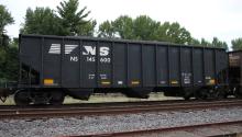 NS 145600 is seen at Deepwater, NJ on 9/27/18. Car is ex CR 498260, built 1-96 and was re-bodied 6-13 by FCA at Roanoke, VA.