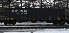 NS 145854 is seen at Deepwater, NJ on 2/14/14. Car was re-bodied from CR 498067 in Sept of 2013 by Freight Car America in Roanoke, VA. CR 498067 was built 4-95 by HCS as a H2B class 4 bay hopper.