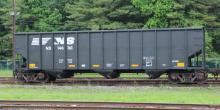 NS 146161 is seen at Deepwater, NJ on 6/9/14. Car was re-bodied from CR 498582 in Dec of 2013 by Freight Car America in Roanoke, VA. CR 498582 was built 5-98 by HCS as a H2C class 4 bay hopper.