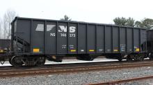 NS 146273 is seen at Deepwater, NJ on 3/1/15. Car was re-bodied from CR 498920 in Sept of 2013 by Freight Car America in Roanoke, VA. CR 498920 was built 8-98 by HCS as a H2C class 4 bay hopper.