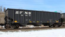 NS 146315 is seen in the consist of NS 507 at Wyomissing, PA on 2/24/15. Car was re-bodied from CR 498949 in Aug of 2013 by Freight Car America in Roanoke, VA. CR 498949 and was built 8-98 by HCS as a H2C class 4 bay hopper.