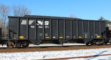 NS 146391 is seen at Deepwater, NJ on 1/4/15. Car was re-bodied from CR 498965 in July of 2013 by Freight Car America in Roanoke, VA. CR 498965 was built 8-98 by HCS as a H2C class 4 bay hopper.