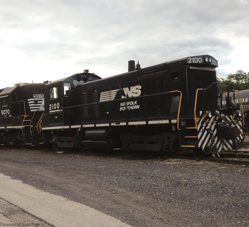 NS SW1001 2100 (CR 9400/RDG 2625) and ex-SR GP38-2 5070 at Abrams yard on August 24, 2014.