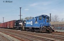 Former Conrail SW1001s 9409 (2101) and 9418 (2107) work the interim hump at Enola Yard on 4/20/2004