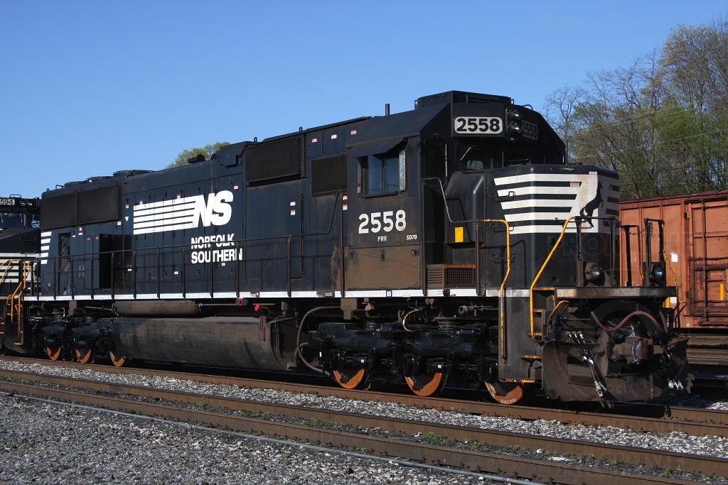 Showing off her new "shoes" and still with the PRR sublettering affixed, former CR 2558 waits at the west end of Enola Yard after having just arrived from Conway.