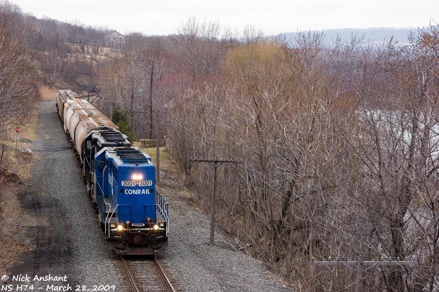 This ex-Reading GP40-2 leads Allentown-based local H74 northbound towards Palmerton on ex-Central Railroad of New Jersey trackage.