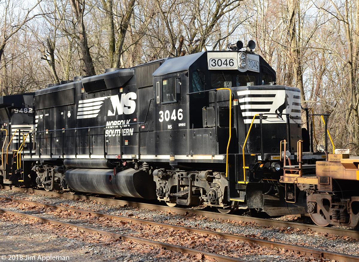 NS 3046 is seen passing by Banks Siding around MP 751 on the NS Sunbury Line.