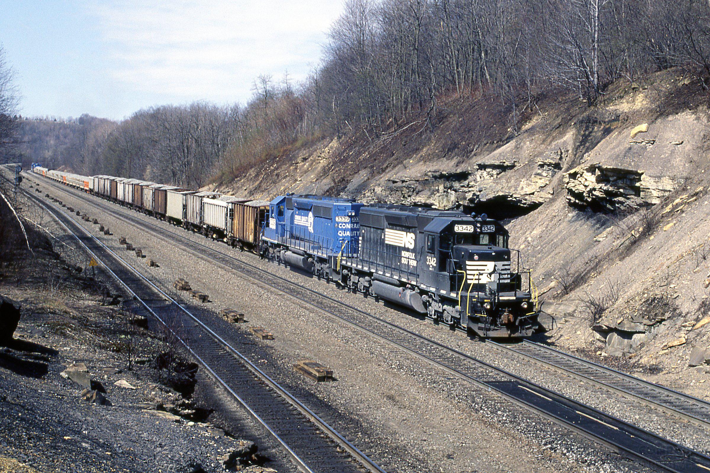 Previous Next NS 3342 EMD SD40-2 Pittsburgh Line Allegheny Twp PA with unknown train Photo By Rich Bowes Location City Allegheny Twp PA Conrail Number 6380 Year 1999 Original Date 8/1/99 Collection CRHS Conrail Photo Archive Contributions