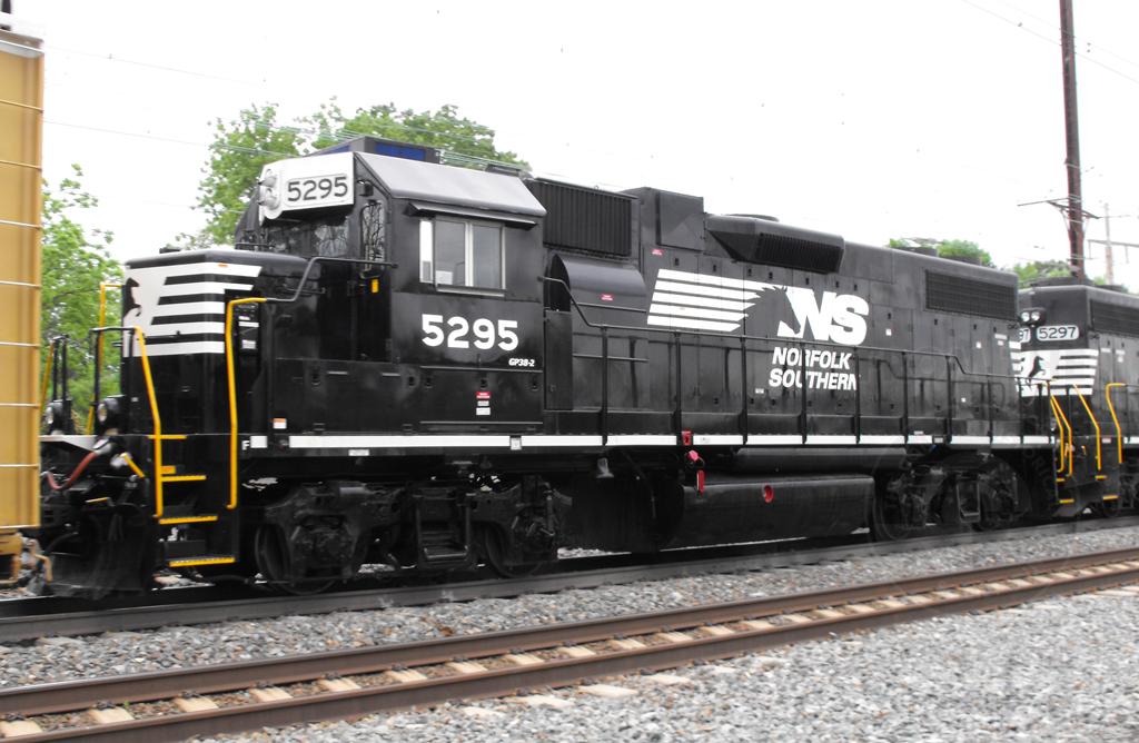 Former CR 8100 is seen in fresh horsehead paint on NS 36A at Newark DE on 5/23/13. Unit previously wore standard NS paint.