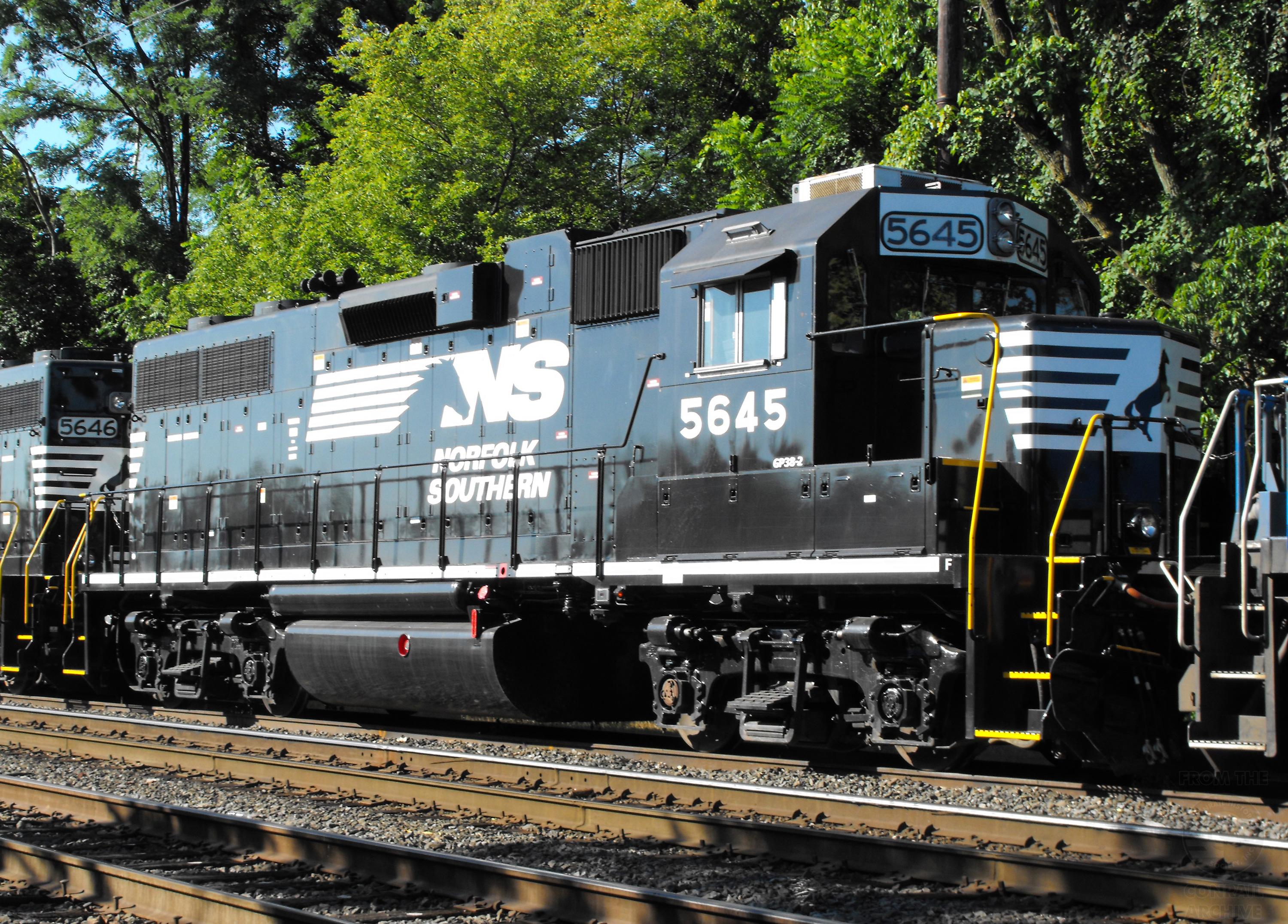 NS 5645 is seen at West Fairview, PA on 8/9/08. Unit is ex NS 2900/CR 7711/PC 7711 and was rebuilt by NS to a GP38-2 and was released from JBS in June of 2006.