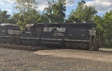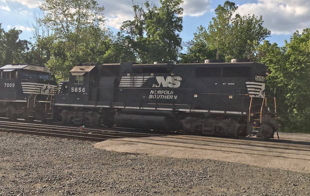 NS 5656 (former CR GP38 7717) works Abrams yard with NS 7009 at King of Prussia, PA on May 29, 2022.