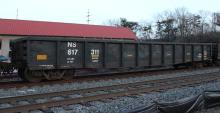 NS 617311 is seen at Westville, NJ on 4/13/15. Car is ex CR 576604/PC 576604, built 3-68 and rebuilt 3-91. Car was repainted NS 2-07 by RA DFWB and is classed GP41 by NS.