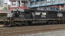 Former NS 5408/CR 6714 is seen leading NS 17G west at Altoona, PA on 6/13/14. Unit was rebuilt by NS to a SD40E and was released from JBS in Apr of 2010.