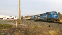 NS 536, another load of coal for the PPL Montour Power Plant at Strawberry Ridge, PA passes Great Dane Trailers Danville Plant.