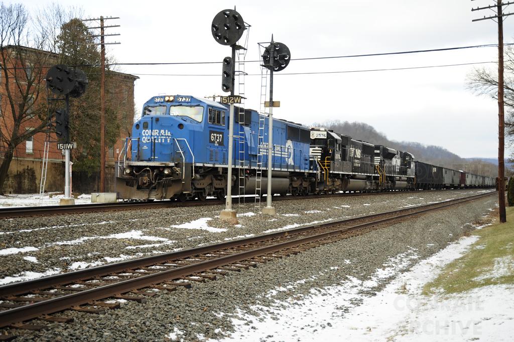 NS SD60I 6737 exCR 5608 leads a loaded coal train @ Port Royal, PA