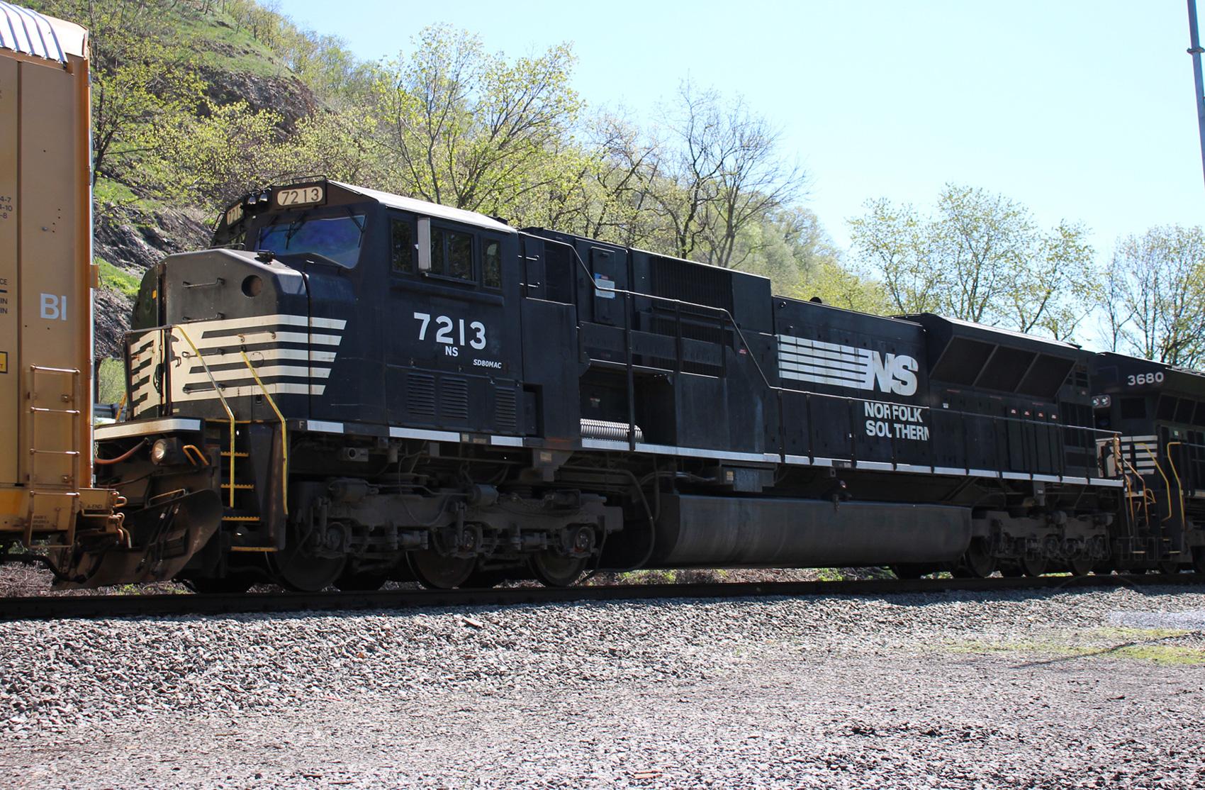 Former CR 4123 is seen trailing on 18N at Rockville, PA. Unit was retired by NS in Feb of 2020 and sold to Progress Rail.