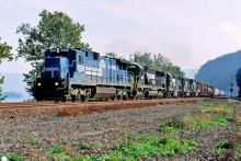 NS 8201 (ex-CR 6003) is on the point of a westbound freight at Duncannon, Pa 10/2000