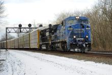 NS 8367 exConrail 6140 leads 18N under the signals at Tuscarora, PA