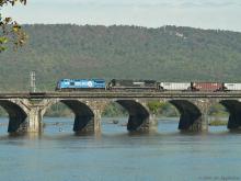 Ex-CR 6216 D8-40CW leads an empty hopper train west across Rockville Bridge.