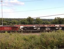 CP AC4400CW 9554, NS C40-8W 8420 (CR 6231), and C40-9W 9818 pull into Enola yard on August 25, 2014.