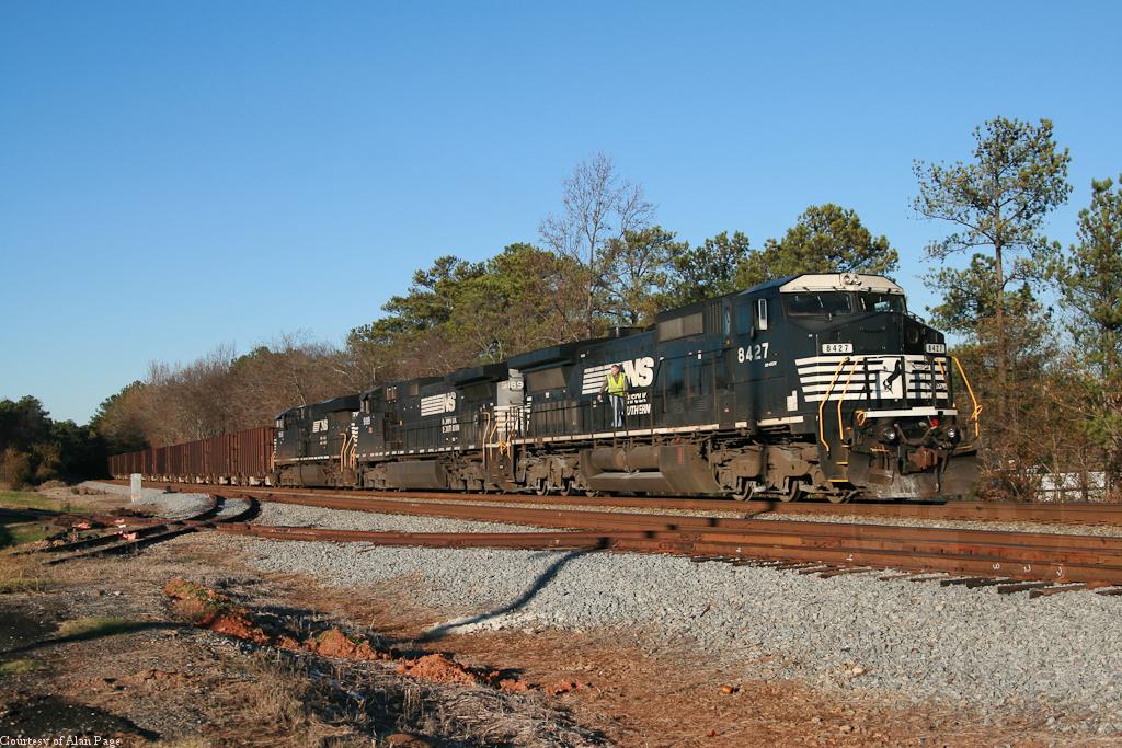 NS C40-8W 8427 (CR 6243) leads D9-40CW 9189 and ES40DC 7695 at Duluth, GA on November 25, 2011.
